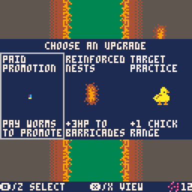 | Tags | 2D, Boss battle, Chicken, No AI, PICO-8, Pixel Art, Short, Singleplayer, upgrades |